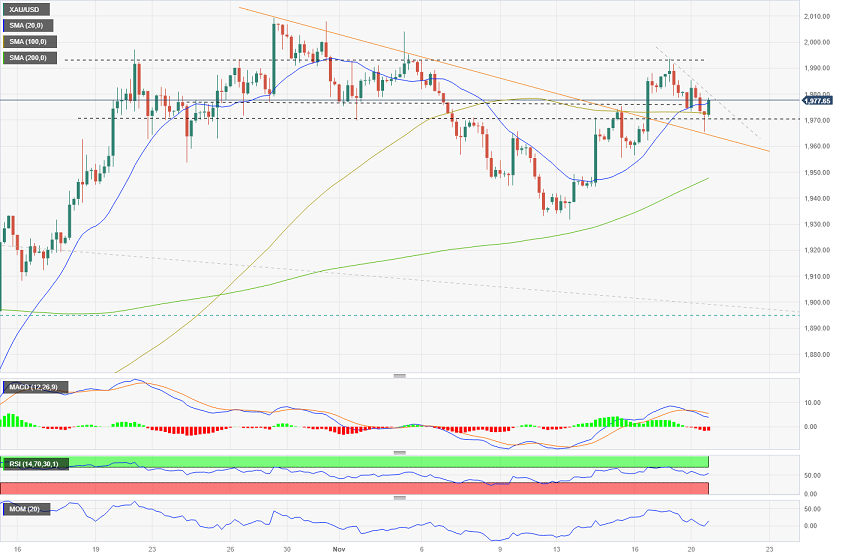 周二(11月21日)亚市早盘,现货黄金短线突然急涨约10美元,金价刚刚突破1988美元/盎司,刷新两日高位,上周五触及的近两周高点阻力在1993.31美元/盎司附近。FXStreet分析师Matías Salord最新撰文,对黄金技术前景进行分析。