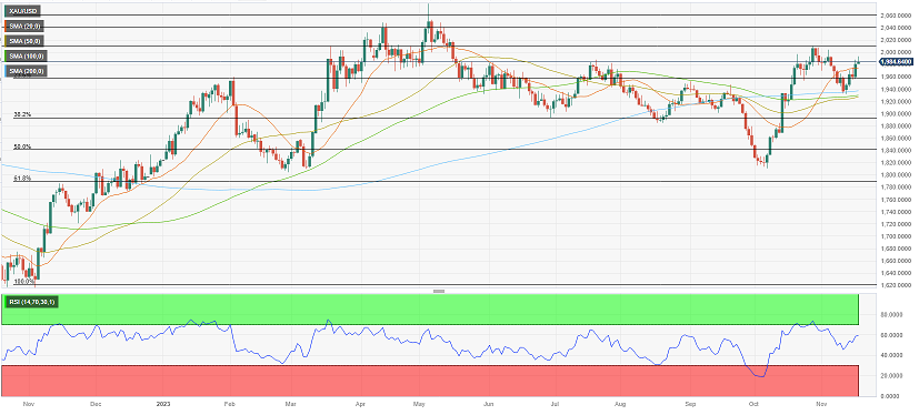 若黄金进一步下跌,那么金价可能挑战200日移动均线1938美元/盎司。在此之前,11月14日低点1944美元/盎司可能会拯救黄金买家。