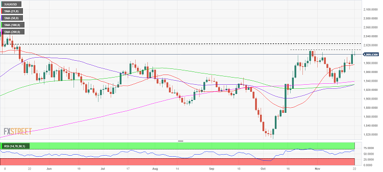 周三(11月22日)欧市盘中,现货黄金维持日内反弹走势,金价目前位于2003美元/盎司附近。FXStreet分析师Dhwani Mehta周三撰文称,黄金关注美国经济数据,以寻求新的提振。