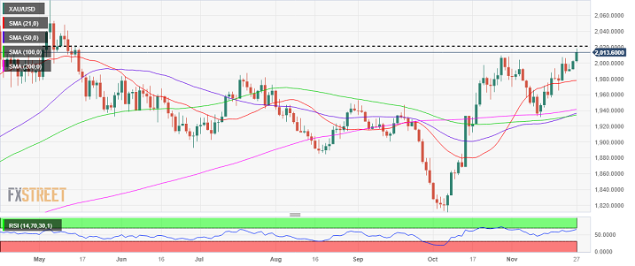 FXStreet分析师Dhwani Mehta周一撰文称,金价在2000美元/盎司上方占据主导地位,周一亚市早盘,金价一度触及六个月高点2018美元/盎司。