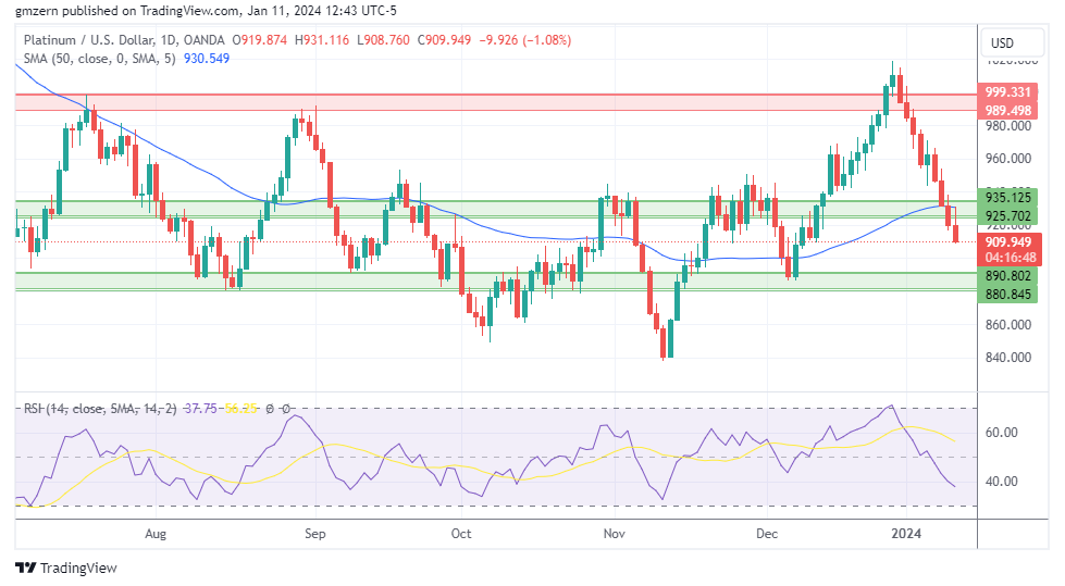 由于交易商对美国通胀数据做出反应,铂金仍面临巨大压力。从技术角度来看,铂金跌破了925-935美元的支撑位,并正在向下一个支撑位880-890美元迈进。