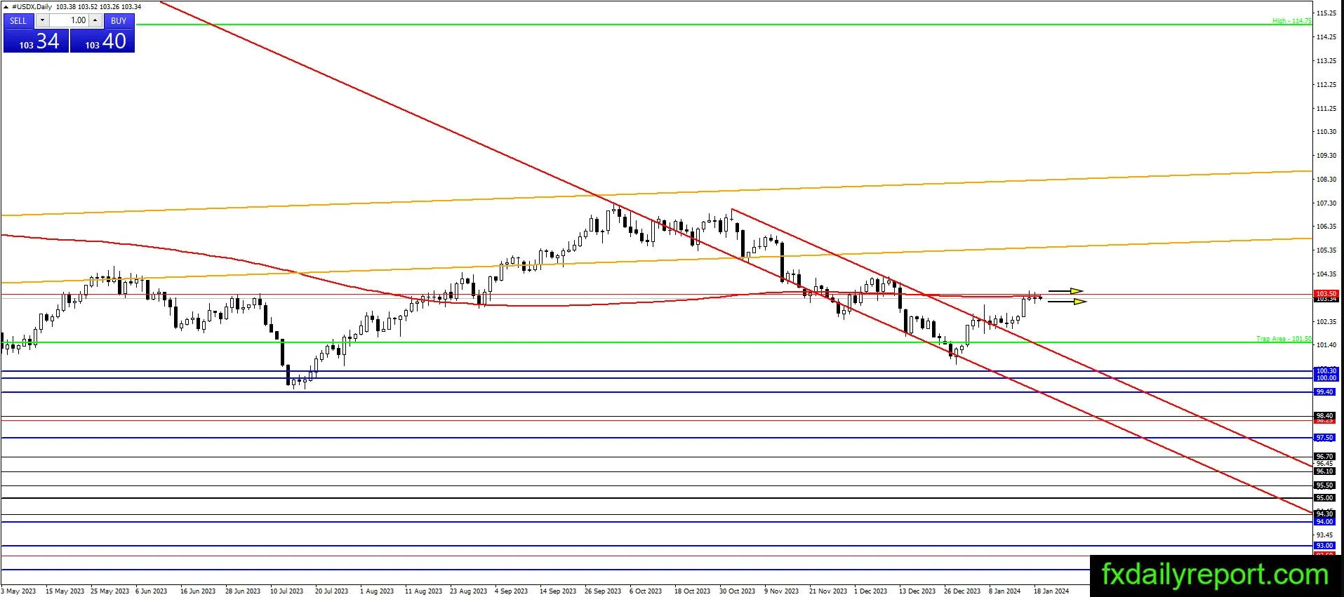 周五(1月19日),美元的上涨势头在过去几个交易日中依然没有减弱,这一次是连续第三周上涨,美元指数在103.70区域附近创下年度新高。随着本周的进展,美国经济数据的鼓舞人心,包括零售销售、费城联储制造业指数和每周初请失业金人数,都为美元指数提供了额外支持。