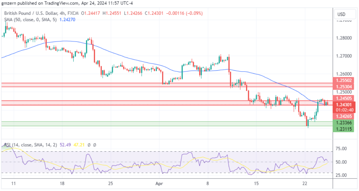 由于交易者关注美国国债收益率上升,英镑/美元仍停留在阻力位1.2425 – 1.2450附近。