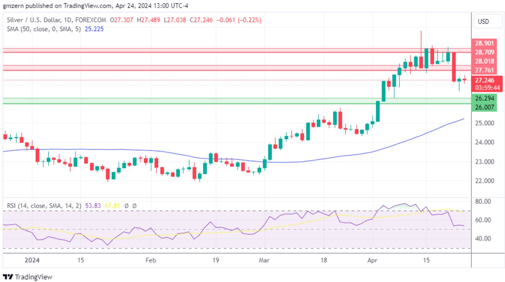 如果白银上涨至27.50美元以上,它将面临27.75 - 28.00美元的阻力测试。