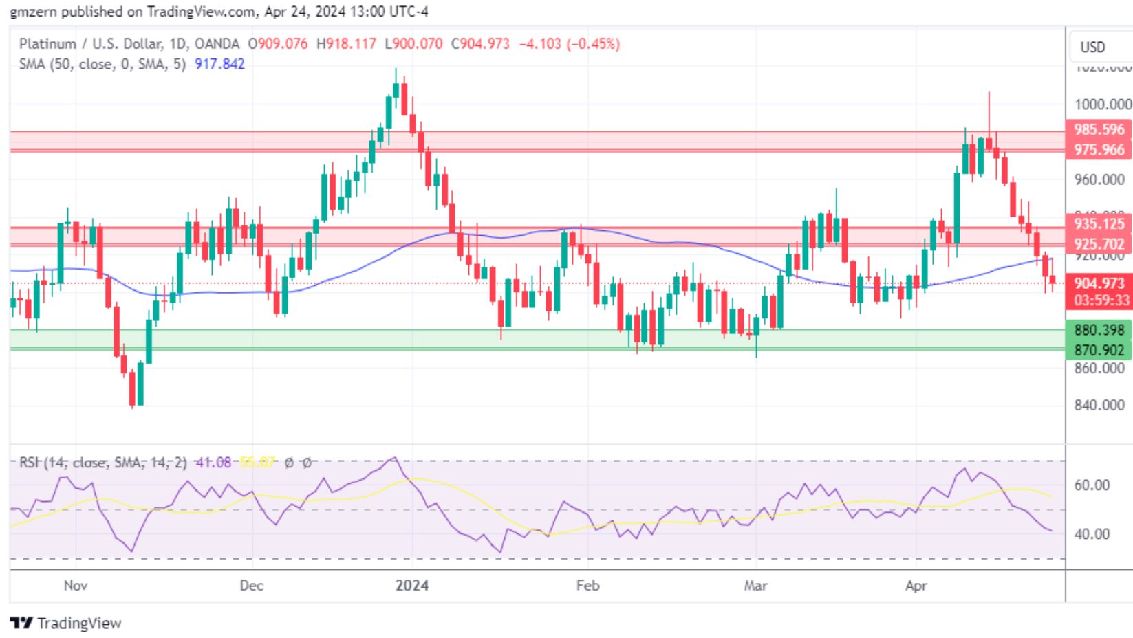 如果跌破900美元水平,将开启至870-880美元支撑位的测试之路。